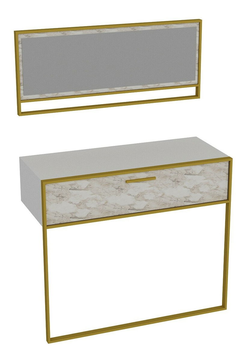 Konzolový stolík Poppy (Zlatá + Biela) (so zrkadlom)