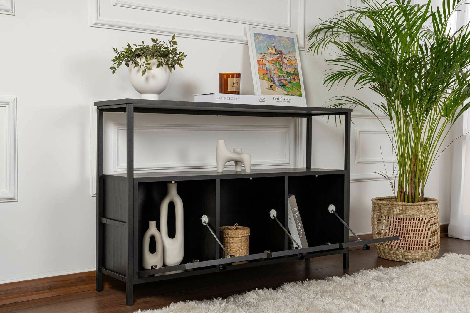 - Konzolový stolík Solac 3 (tmavé drevo + čierna)