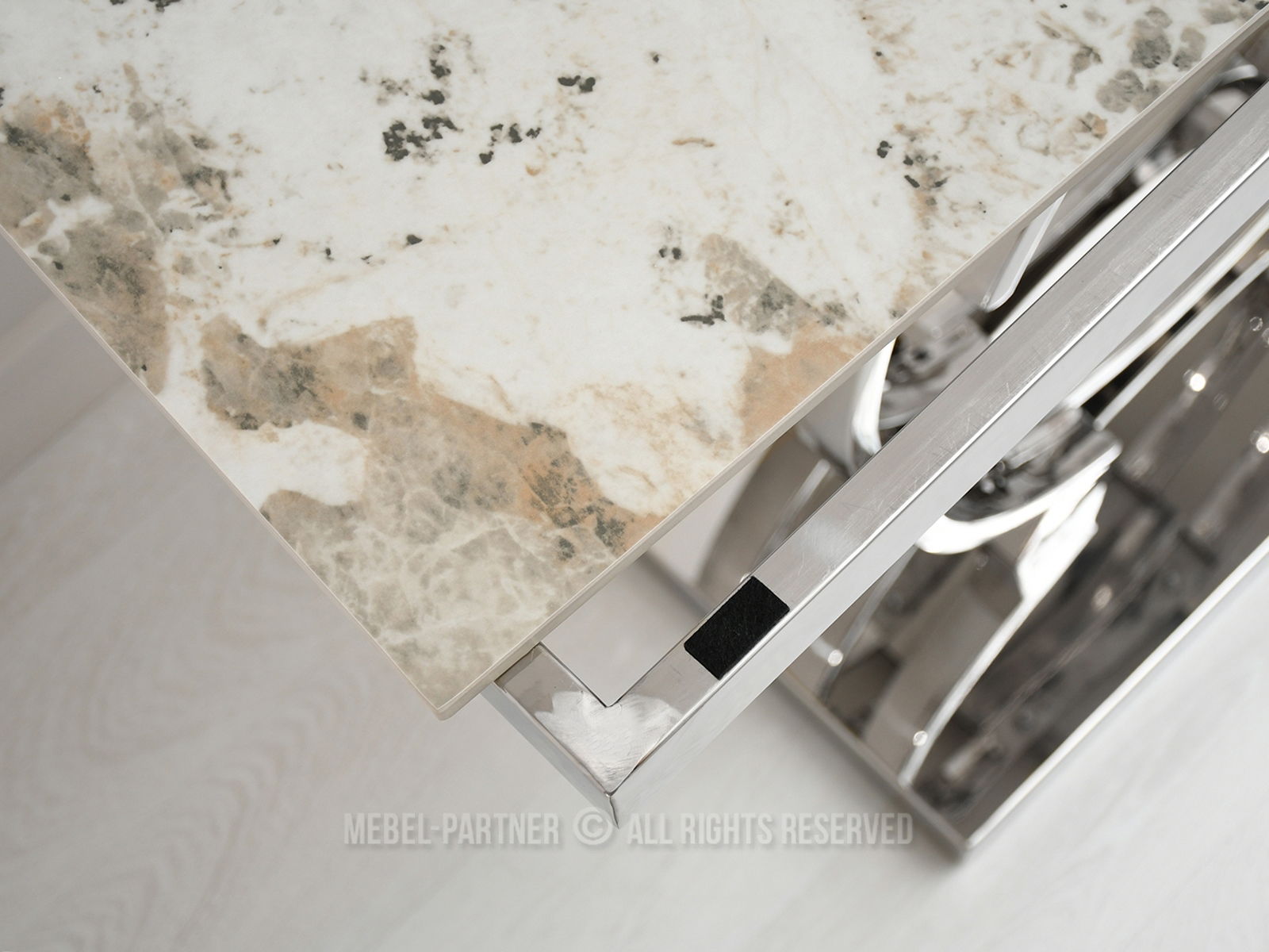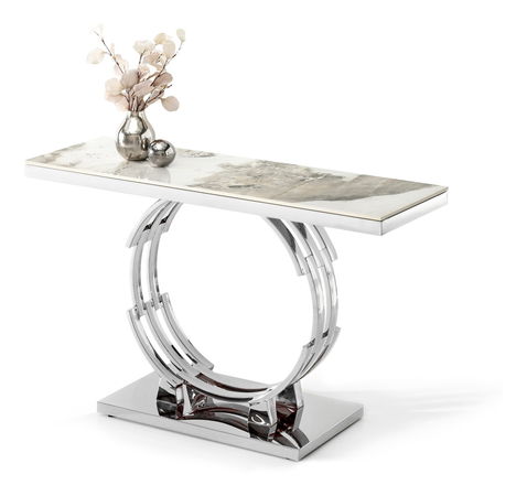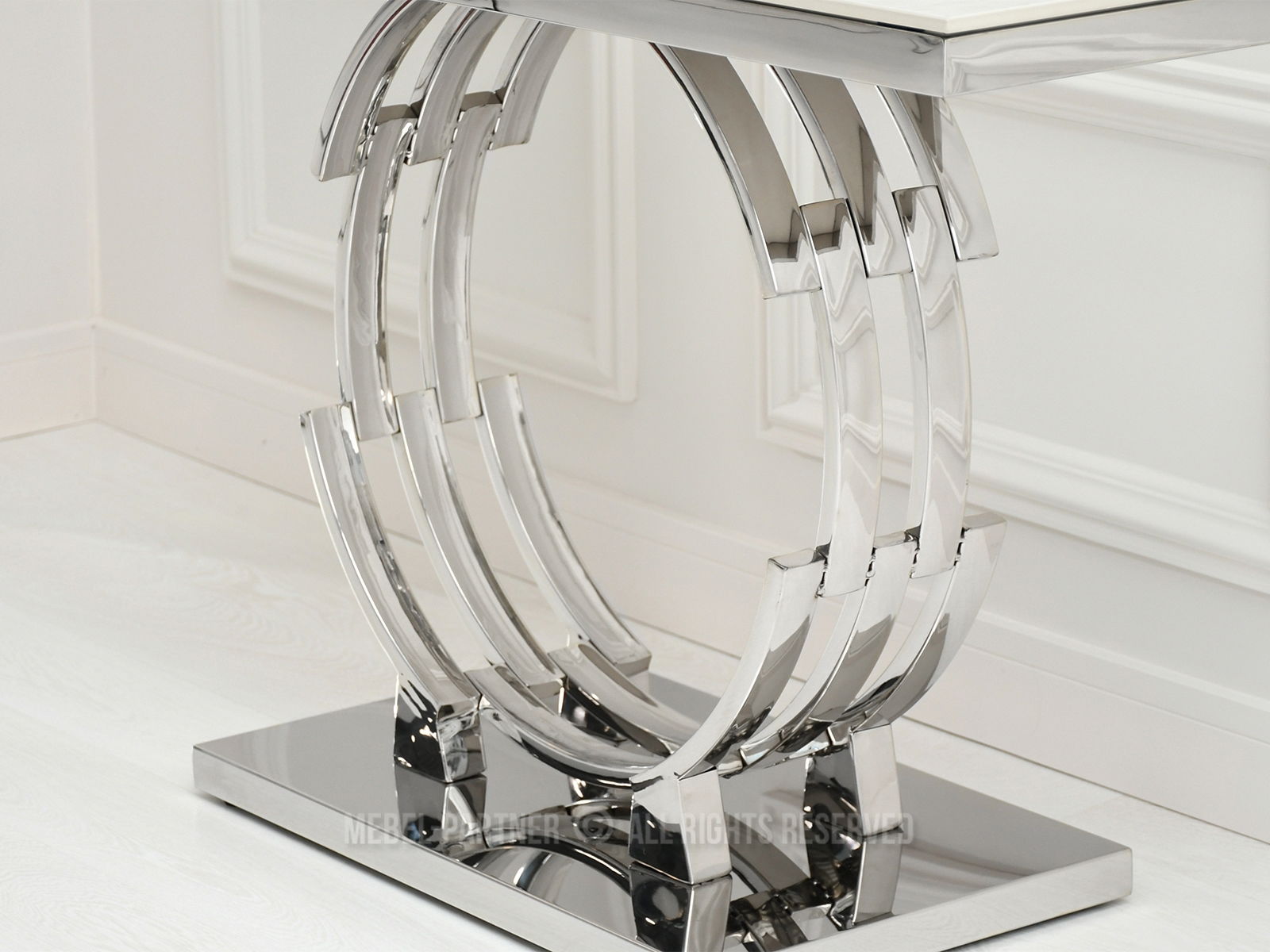 Konzolový stolík Tess (sivý mramor + chrómová)