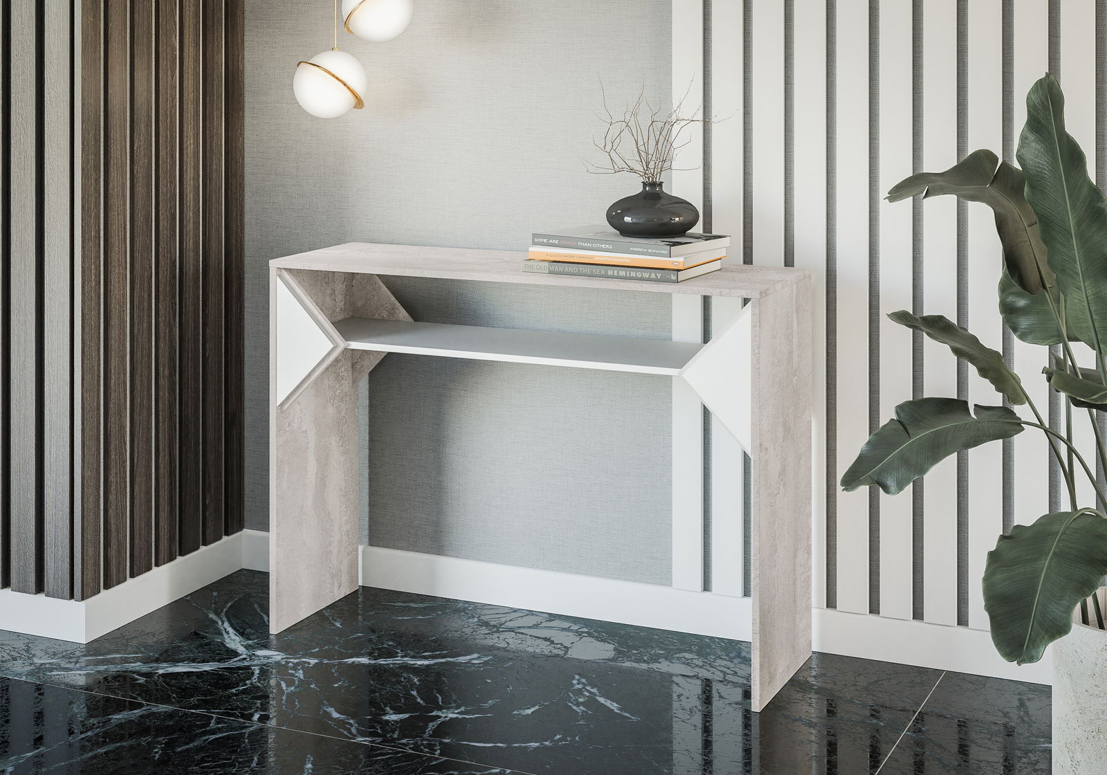 ZobraziťKonzolový stolík Tonfir (svetlosivá + lesk biely) je moderný nábytok, ktorý poskytuje praktické a elegantné riešenie pre váš interiér. Jeho výška 80 cm, šírka 110 cm a hĺbka 35 cm sú ideálne pre usporiadanie vašich predmetov, ako sú knihy, dekorácie alebo elektronické zariadenia. Model K350 Concrete Flow + Lesk biely, kombinácia svetlosivej farby a lesku biely, vytvára zaujímavý kontrast a pridáva do vášho interiéru moderný šmrnc. Konzolový stolík Tonfir je vyrobený z kvalitných materiálov, ktoré zaisťujú jeho trvanlivosť a odolnosť. V dôsledku svojho jednoduchého, ale elegantného designu sa hodí do rôznych interiérov, od modernej obývačky až po kanceláriu.