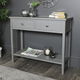 Ste fanúšikom funkčného nábytku, ktorý navyše vyzerá štýlovo a perfektne zapadá do celkového dizajnu interiéru? Vyberte si konzolový stolík Varun. Či už ho použijete ako odkladací stolík alebo toaletný stolík, v každej úlohe vás presvedčí o svojich kvalitách. Vyrobený z MDF v svetlosivom prevedení. Disponuje úložným priestorom v podobe dvoch zásuviek, ktoré sa otvárajú kovovými úchytkami. V spodnej časti sa nachádza polica.