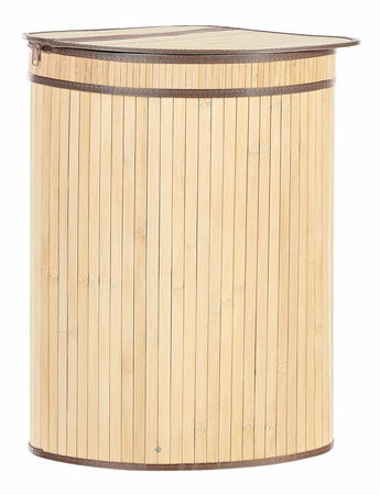 Doplňte svoju kúpeľňu alebo spálňu týmto priestranným dreveným košom, do ktorého možno odložiť bielizeň, uteráky alebo detské hračky. Vnútro koša je vystlané látkou, ktorú možno prať. Vďaka svojmu tvaru vyplní akýkoľvek roh v miestnosti a ponúkne dostatok úložného priestoru. Tento kôš s prírodným dizajnom je ideálnym doplnkom do interiérov v modernom alebo škandinávskom štýle.