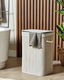S týmto ručne vyrobeným košom bude triedenie bielizne mimoriadne jednoduché. Súčasťou koša je veko, ktoré má praktické zatváranie so zipsom, takže ho pri ukladaní oblečenia nemusíte úplne skladať. Okrem toho má aj držadlá, vďaka ktorým ho možno jednoducho premiestniť dokonca aj vtedy, keď je plný vecí. Vonkajšia časť koša je vyrobená z prírodného bambusového dreva, zatiaľ čo vnútorná časť je vyrobená z polyesteru.