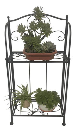 Kovový regál Caritas (čierna) s výškou 65 cm a hĺbkou 19,5 cm je ideálnym doplnkom na balkón alebo do záhrady. Regál je celokovový s ornamentálnym dizajnom a má dve poličky s nosnosťou 5 kg. Je vhodný do interiéru aj exteriéru a môže byť jednoducho zložený. Regál prichádza v demonte.