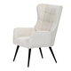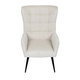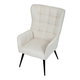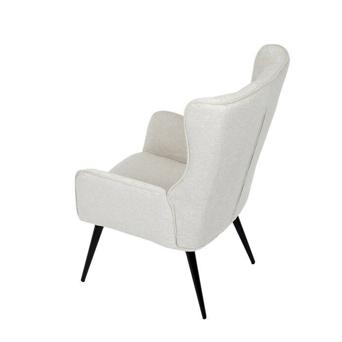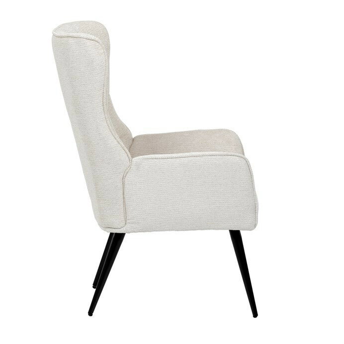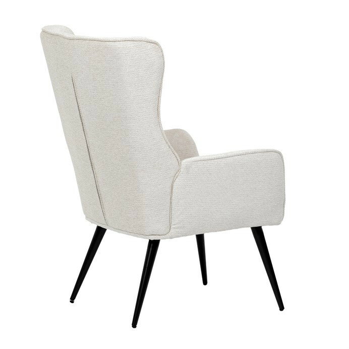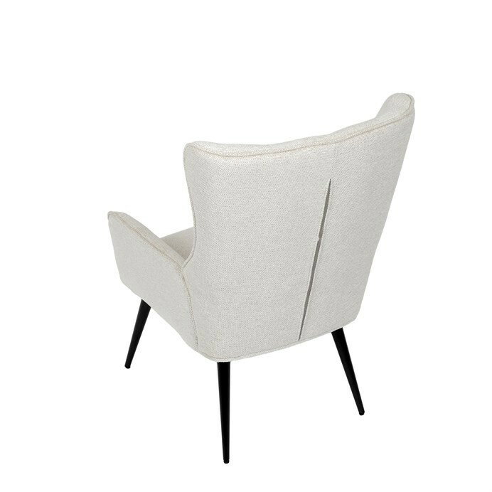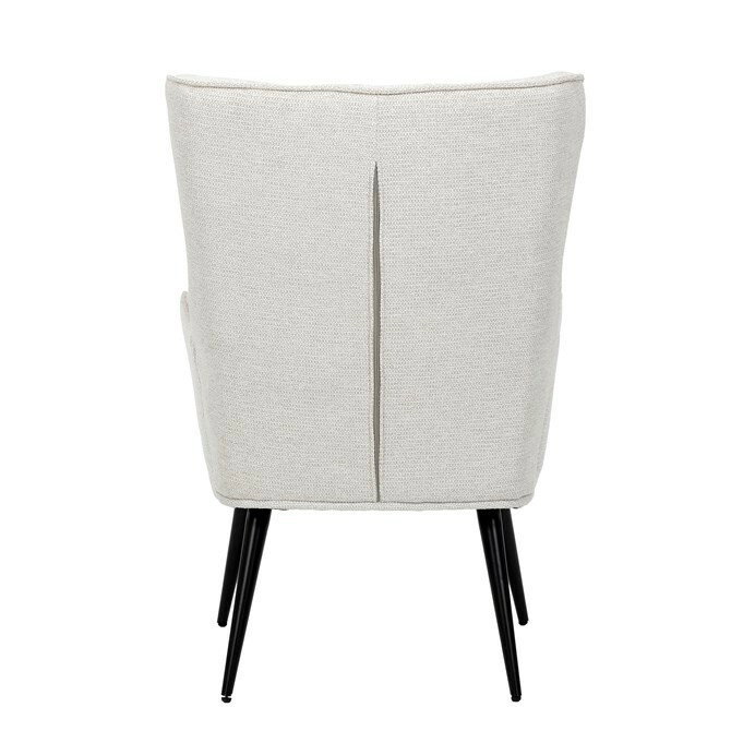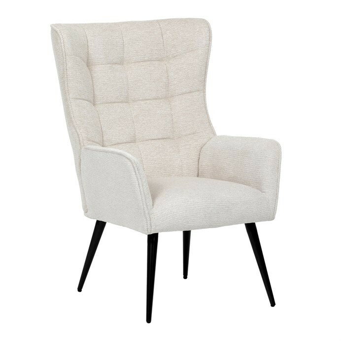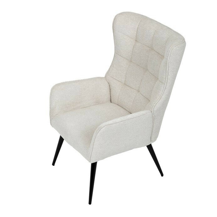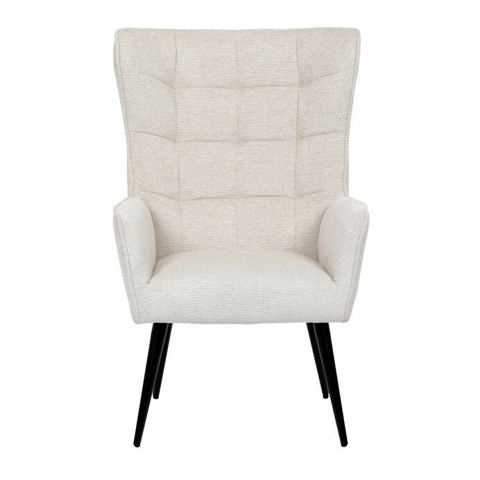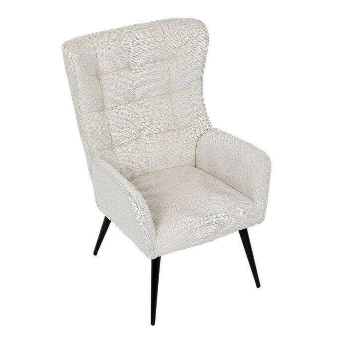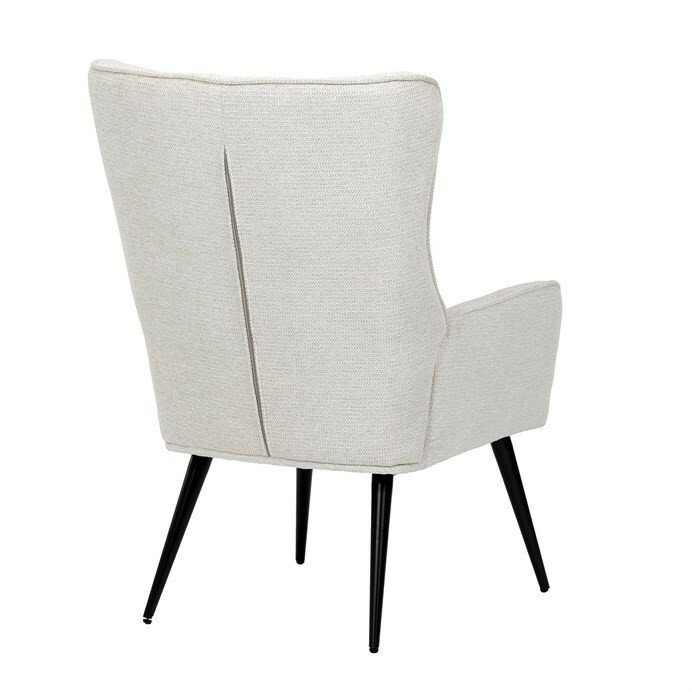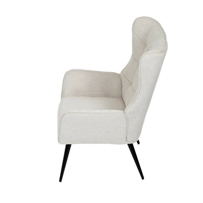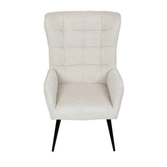 Kreslo s béžovým poťahom z vodeodolnej látky kombinuje pohodlie s praktickým využitím v interiéri. Masívne nohy z kaučukovníka doplnené o kovové prvky zabezpečujú stabilitu a dlhú životnosť. Dizajnové prešívanie na operadle a sedáku podčiarkuje moderný vzhľad a zároveň prispieva k pevnosti čalúnenia. Podrúčky sú integrované do celkového tvaru kresla, čo zvyšuje komfort pri sedení. Vďaka použitým materiálom je kreslo vhodné na každodenný relax s dôrazom na jednoduchú údržbu a odolnosť voči vlhkosti.