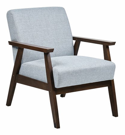 Vylepšite vzhľad svojho interiéru týmto štýlovým kreslom v retro štýle. Čalúnenie je vyrobené z odolnej polyesterovej tkaniny, ktorá sa ľahko udržiava, čo znamená, že kreslo vám bude slúžiť roky. Sivú farbu čalúnenia zvýrazňuje rám vo farbe tmavého dreva, ktorý zároveň zabezpečuje stabilitu kresla. Doplňte svoju obývaciu izbu alebo spálňu týmto nádherným retro kúskom.