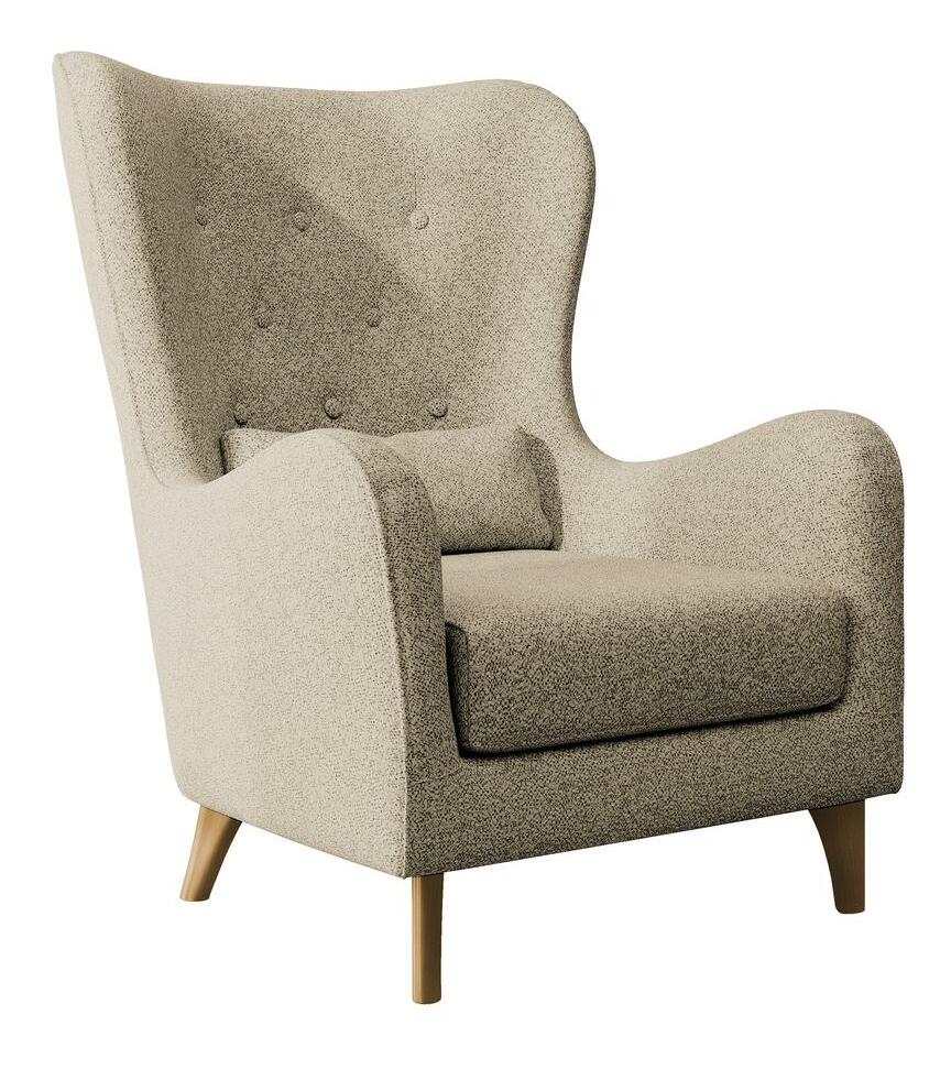 ZobraziťHľadáte pohodlné kreslo, ktoré vám umožní vytvoriť si útulný kútik na oddych? Vyberte si model Vďaka vysokému komfortu, ktorý môžete zažiť, sa budete konečne cítiť uvoľnene. Nábytok je osadený na drevených nožičkách zaisťujúcich stabilitu. Priestranná korba je vybavená vysokými podrúčkami a praktickými podrúčkami. Je dokonalým doplnkom na doplnenie funkčnosti interiéru a vytvorenie ideálneho miesta na oddych. Aby sa dosiahol čo najlepší efekt natiahnutia látky, pri výrobnom procese je na operadle stoličky našitý zips, umiestnený v strede, skrytý za paspulou. Takáto pozornosť k detailu zaručuje vysokú kvalitu spracovania a hlavne zaručuje, že bude slúžiť roky Detaily produktu: pohodlné podrúčky, štýlové prešívanie na operadle, drevené nohy vo farbe svetlého dreva, nábytok potiahnutý látkou, Raven 28 v béžovej farbe. Raven je odolný materiál s vrkoču štruktúrou. Nevybledne vplyvom svetla a je vysoko odolný proti suchému treniu.