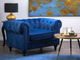 Toto kreslo sa vyznačuje veľkou siluetou so širokými zaoblenými opierkami v ikonickom štýle Chesterfield, ktorý sa hodí do každého moderného alebo tradične zariadeného interiéru. Nízke operadlo a mäkké, husto vyplnené sedadlo poskytujú vynikajúci komfort počas sedenia. Kreslo je čalúnené nádhernou zamatovou látkou v sýtom odtieni modrej a je doplnené kosoštvorcovým prešívaním s gombíkmi. Táto anglická klasika sa ľahko udržiava a bude vyzerať skvele v akomkoľvek interiéri.