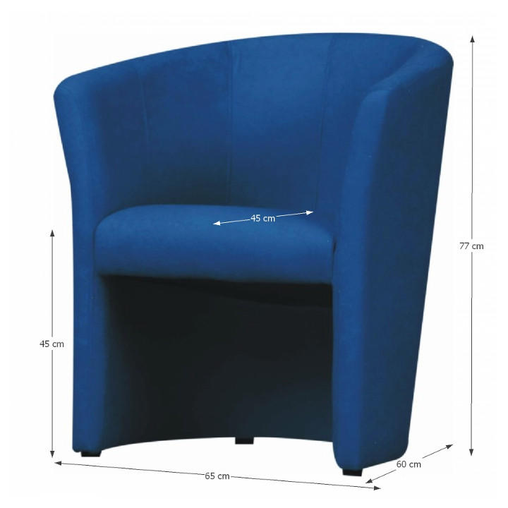 Kreslo Cubali (micro modrá) s výškou 77 cm a hĺbkou 60 cm je moderný nábytok ideálny pre kaviarne, kancelárie alebo obývačky. Je čalúnené v modrej mikrofáze s odolnosťou proti opotrebeniu až 85 000 treniam podľa testu Martindale. K dispozícii sú aj individuálne farebné prevedenia, vrátane 5 farieb mikrofázy, 6 prémiových farieb ekokože a 3 farieb šenilu Lava. Dodacia doba pre individuálne farebné prevedenie je 6-8 týždňov. Kreslo má nosnosť až 120 kg a rozmery 65x60x77 cm. Pre objednanie stačí uviesť požadovanú farebnú kombináciu v poznámke alebo kontaktovať predajcu mailom alebo telefonicky. Galériu s vzorkovníkom nájdete na stránke predajcu.