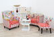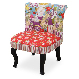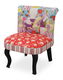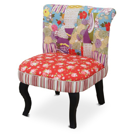 Kreslo, ktoré osloví najmä tých, ktorým imponuje patchworkový štýl. Je veľmi pestré, zložené z viacerých vzorov a spestrí vaše obývacie izby alebo spálne. Operadlo je prešívané a ozdobne vyrezané nohy sú z čierneho masívneho dreva.