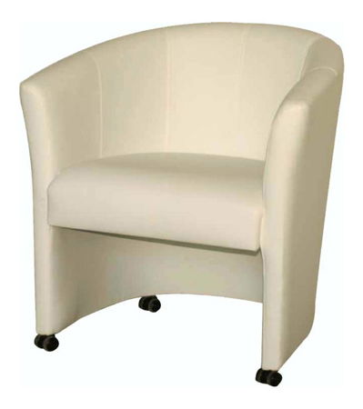 Moderné kreslo na kolieskach vhodné do kaviarenských priestorov, ale aj domácností. Je čalúnené béžovou ekokožou.