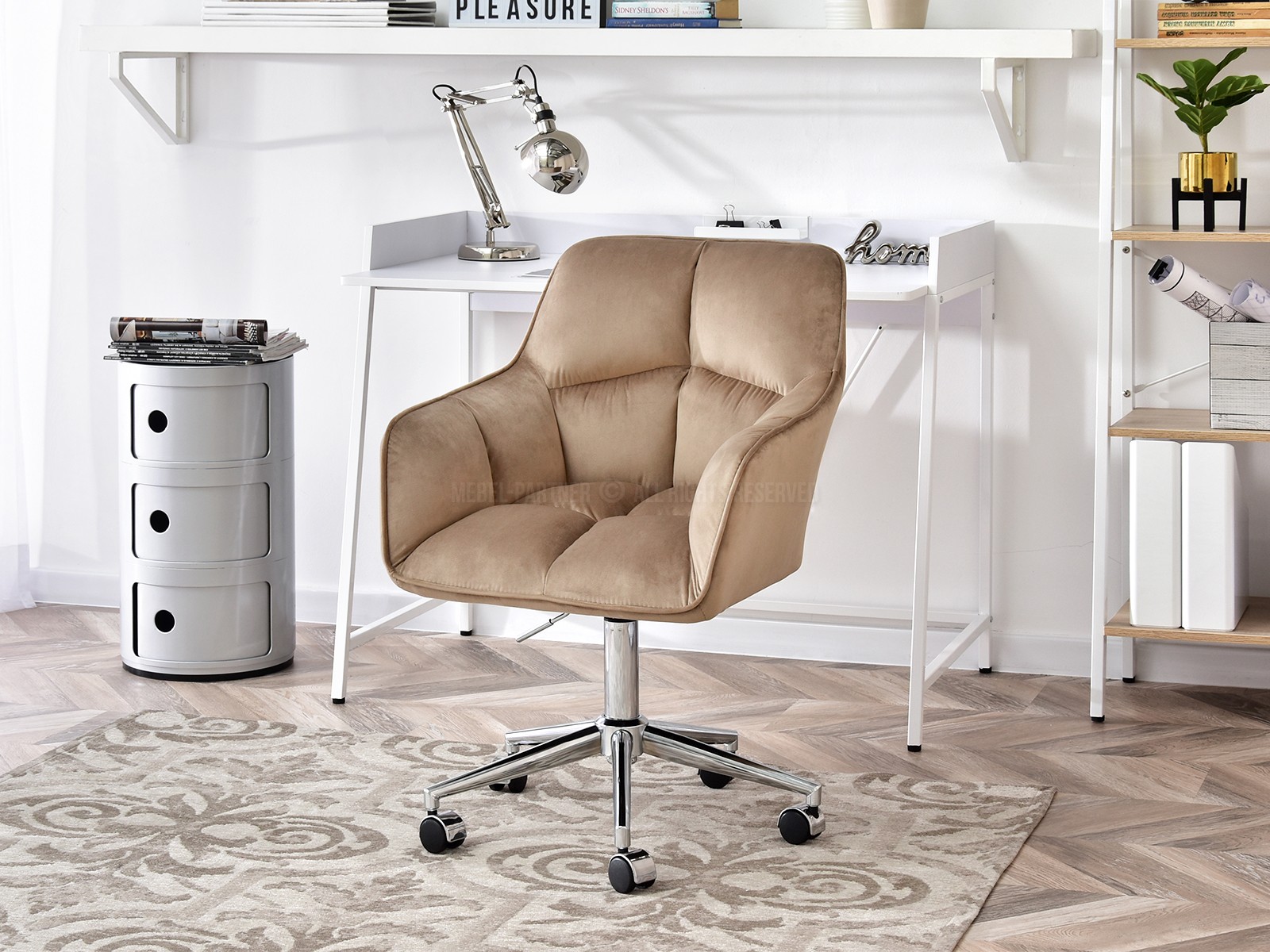 otočné sedadlo, centrálna základňa s kolieskami, podrúčky áno, nastaviteľná Výška