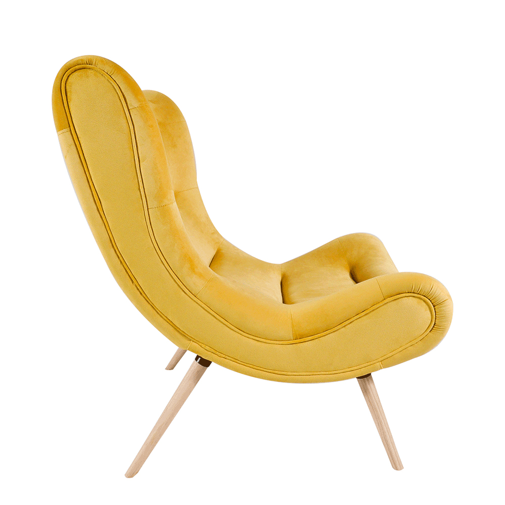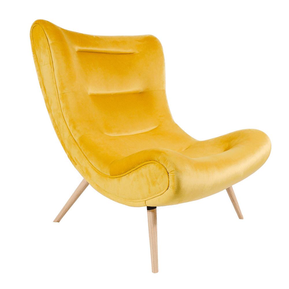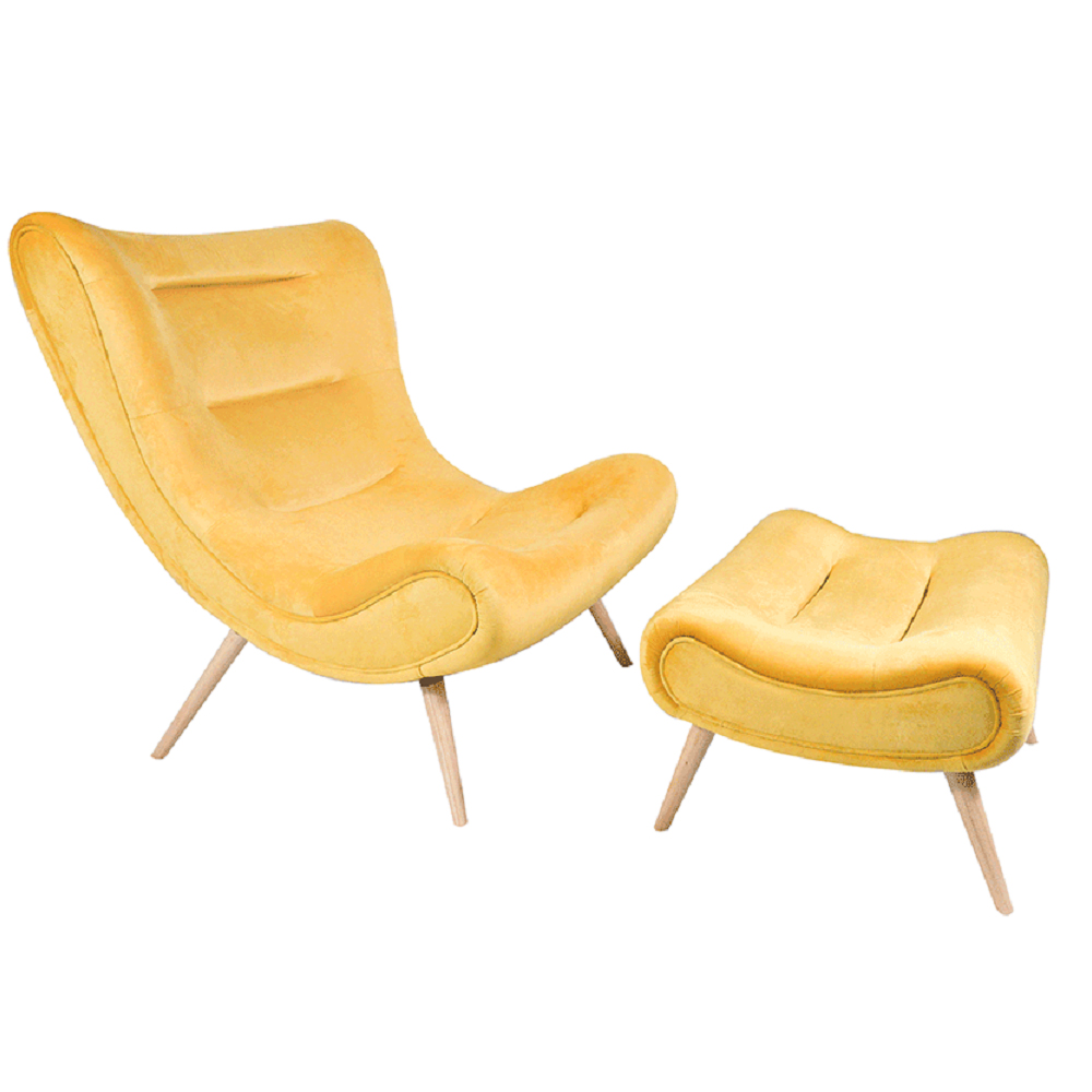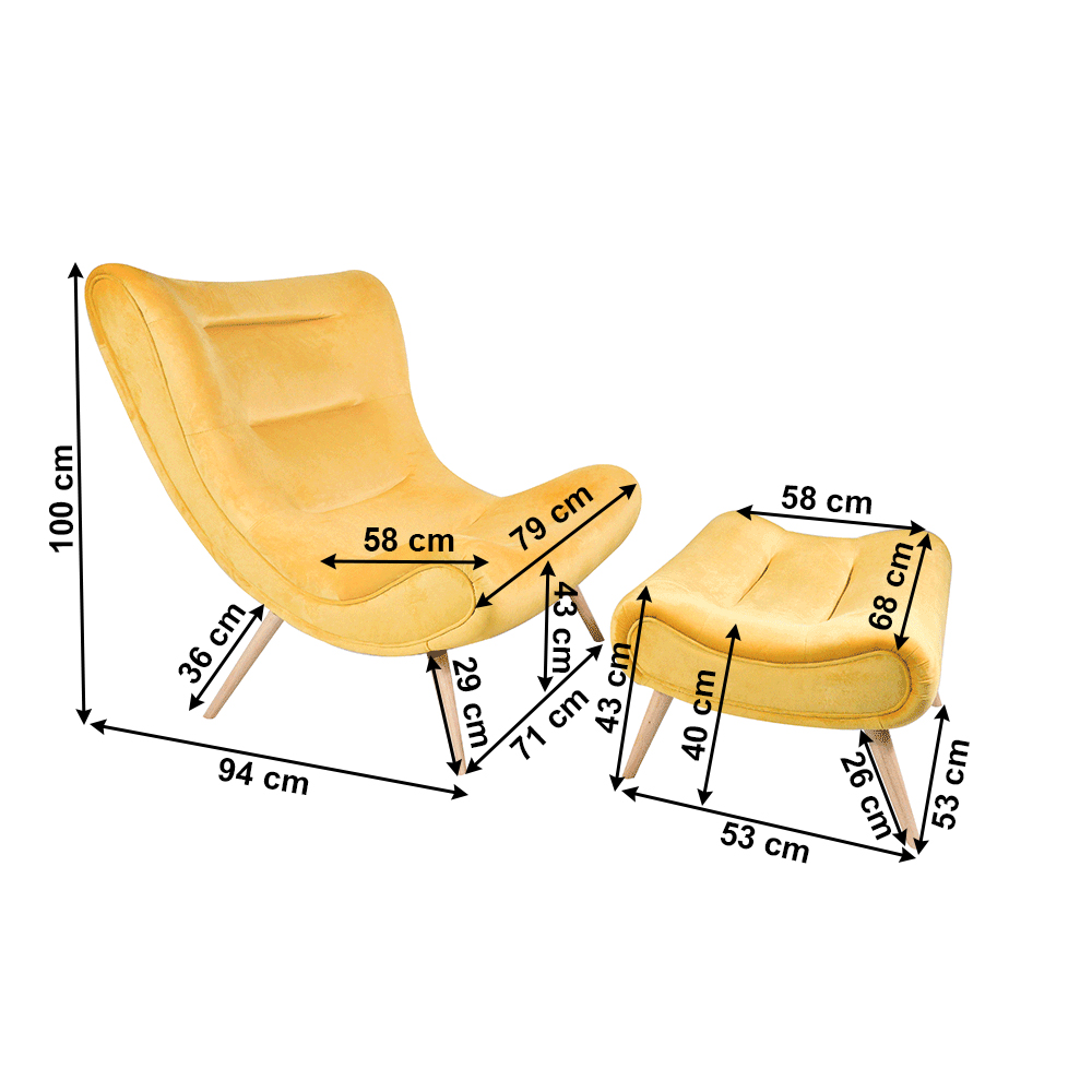 Kreslo Kam v žltej farbe má výšku 100 cm a hĺbku 94 cm. Milovníci pohodlia ocenia jeho dizajn a opierku na nohy, ktorá zabezpečí pohodlie pri sedení. Kreslo je k dispozícii v niekoľkých farebných variantoch a je vyrobené z tkaniny a kaučukového dreva. Tkanina použitá na výrobu kresla je velvet. Šírka sedu je 79 cm a hĺbka sedu 58 cm, výška sedu je 43 cm. Kreslo má nosnosť 100 kg, zatiaľ čo podnožka má nosnosť 90 kg. Nohy kresla sú vyrobené z dreva a majú prírodnú farbu, ich výška je 29 cm. Kreslo sa dodáva v demonte a je určené pre tých, ktorí ocenia kvalitu a dizajn.