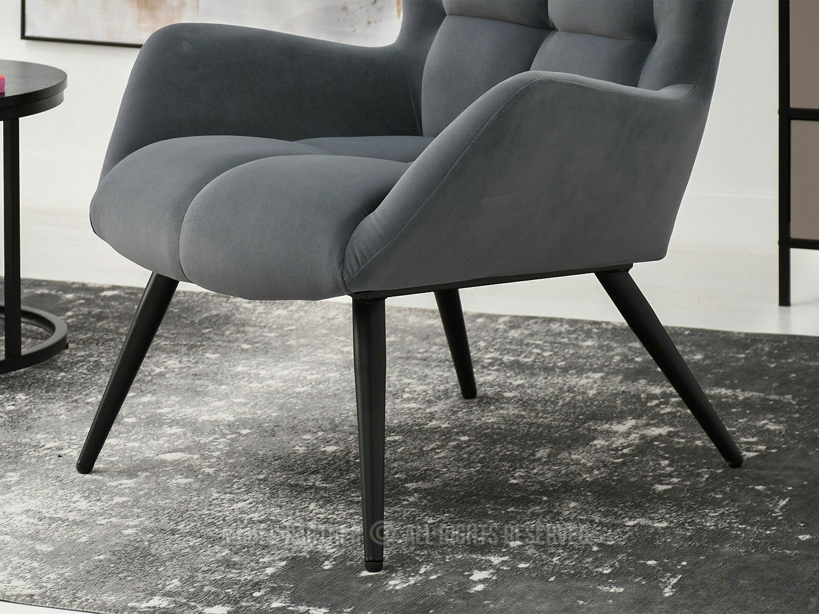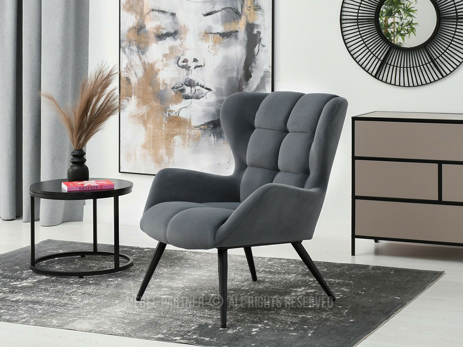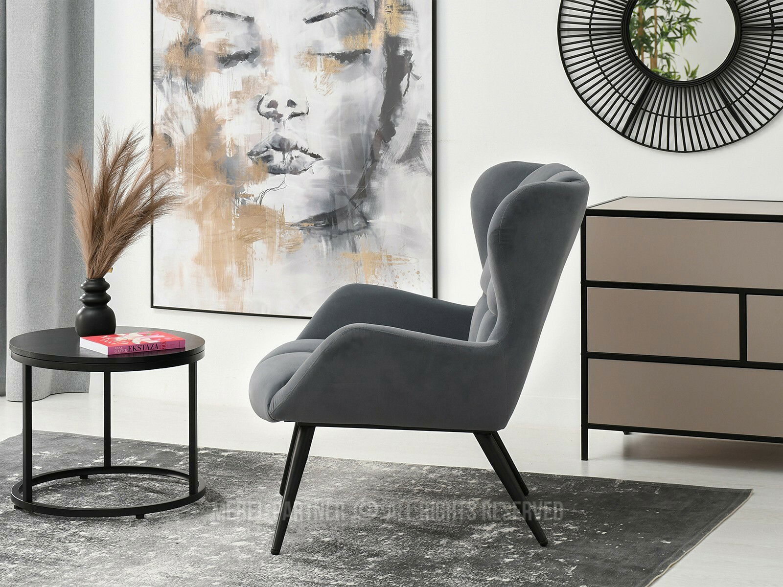 Kreslo Kikino v nadčasovej kombinácii grafitovej a čiernej farby je vhodným doplnkom pre každý moderný interiér. Jeho výrazný tvar s vysokým operadlom a pohodlným čalúnením ponúka komfort na dlhé posedenia, či už pri čítaní knihy alebo sledovaní televízie. Skvelo sa hodí k rohovým sedačkám vhodným do priestoru, ktoré vytvoria príjemnú a praktickú obývaciu zónu.