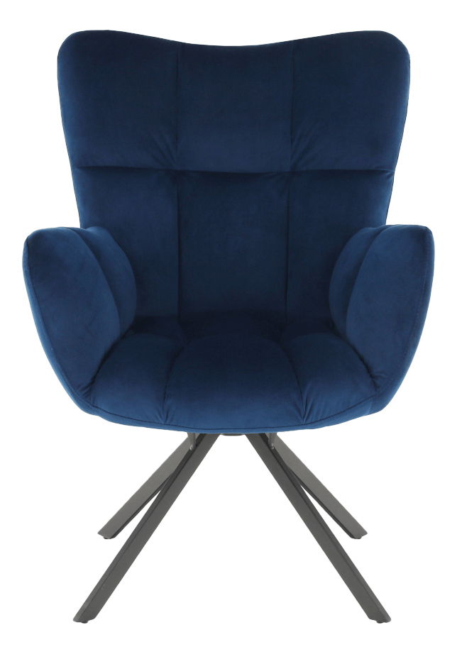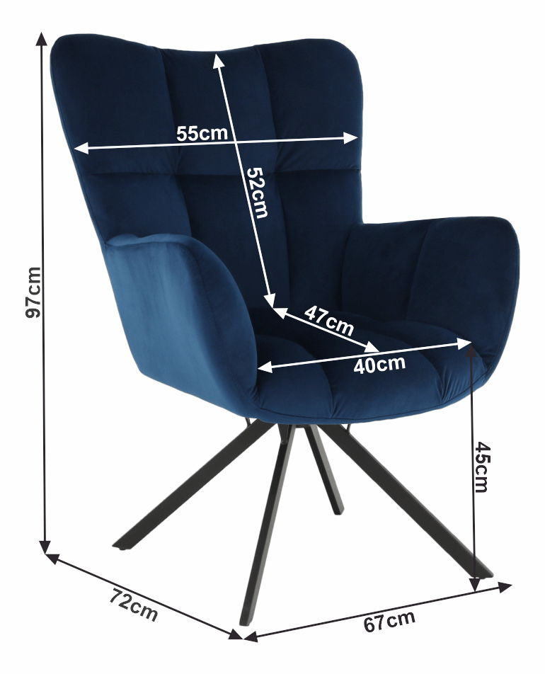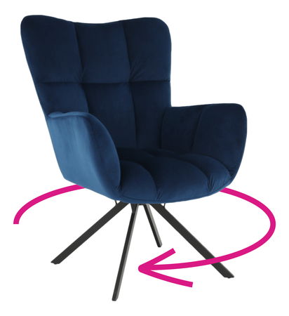 Kreslo Kimora (tmavomodrá + čierna) je elegantný nábytok, ktorý spojuje pohodlie a dizajn. S výškou 97 cm a hĺbkou 72 cm je ideálny ako dekoratívny prvok do vášho interiéru. Kreslo je precízne spracované a čierne kovové nohy dodávajú kreslu unikátny charakter. Výhodou Kimory je, že je otočné a zabezpečuje maximálny komfort. Kreslo je vyrobené z látok a kovu, má výšku sedu 45 cm a hĺbku sedu 47 cm. Okrem tmavomodrej farby je dostupné aj v ďalších farebných prevedeniach. S kreslom Kimora získate kvalitný nábytok, ktorý dokonale doplní váš interiér a poskytne vám pohodlné sedenie.