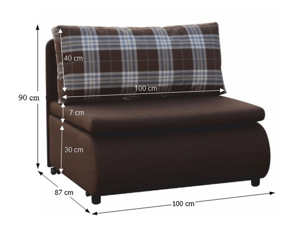 Kreslo Kotu New (hnedá + káro hnedé) s výškou 90 cm a hĺbkou 87 cm je skvelým doplnkom vašej obývačky. Sedadlo má veľkosť 45 x 55-78 cm a plochu spania 100 x 190 cm. Materiál z ktorého je kreslo vyrobené je látka Savana 16 hnedá/vankúš vzor Paris, ktorá má odolnosť až 80 000 oderov podľa testu Martindale. Kreslo má rozmery 100x90x87 cm a plochu na spanie 100x196 cm. Výška spodného priestoru od podlahy je 5 cm a nosnosť je 70 kg. S týmto kreslom sa budete cítiť pohodlne a relaxované.