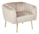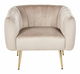 Stavte na luxus, pohodlie a eleganciu a spravte na svojich hostí dojem. Zamatové čalúnenie v sivobéžovom odtieni upúta pohľady najmä svojím očarujúcim vzhľadom a hladkou textúrou. Kombinácia moderného tvaru a elegantných kovových nôh v zlatom farebnom prevedení pôsobí veľmi honosne a príjemne. Z tohto kresla sa stane vaše obľúbené miesto, kde si budete môcť pohodlne čítať, rozprávať sa alebo relaxovať.