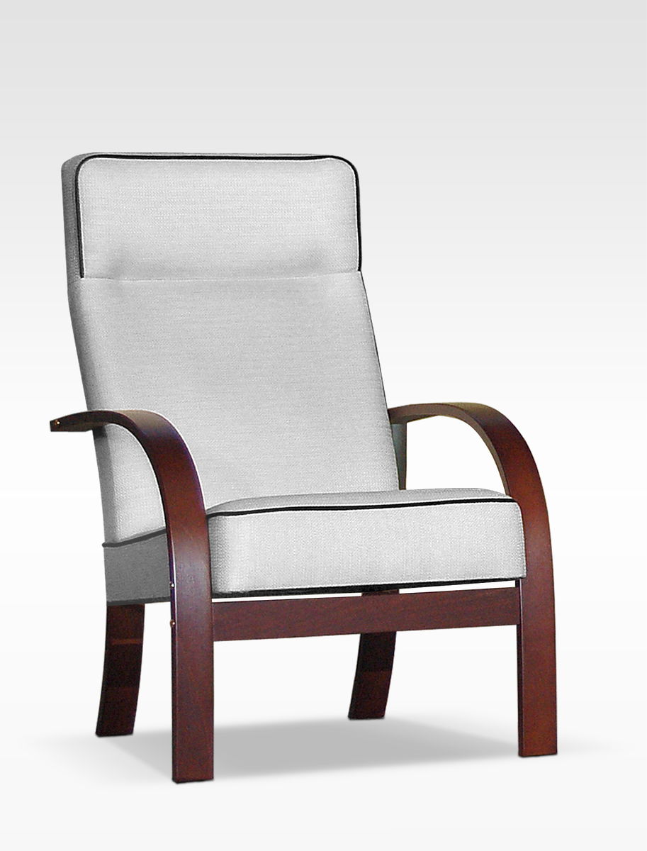 Rám kresla je vyrobený z 25 mm listovej preglejky a čalúnických popruhov. Podrúčky sú vyrobené z 20 mm preglejky lakovanej vo Vami vybranej farbe - Buk, jelša, rustic, lieskový orech alebo venge.