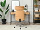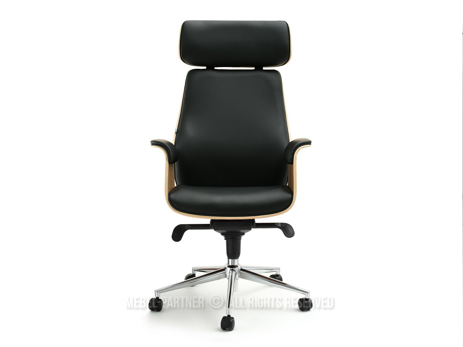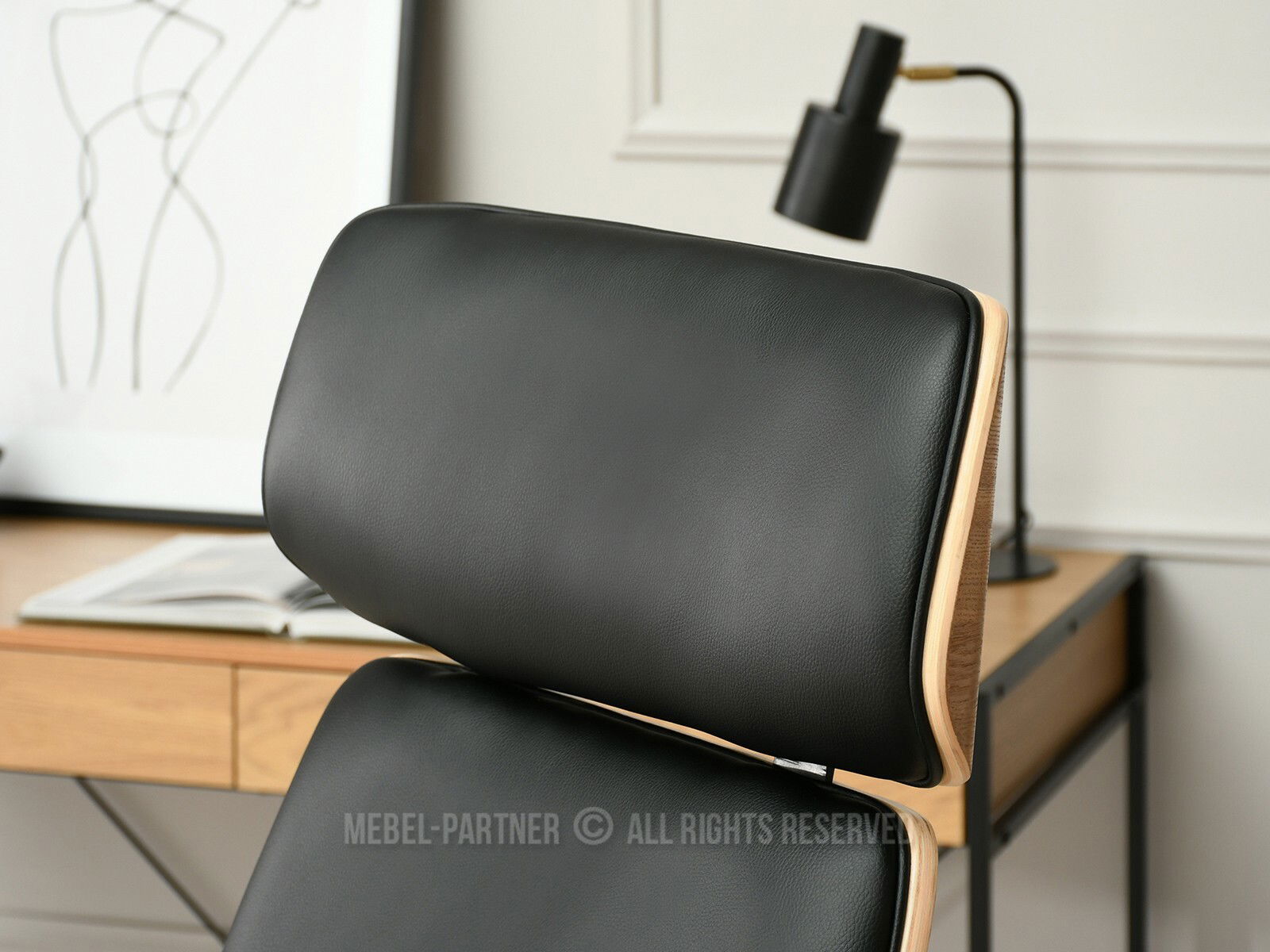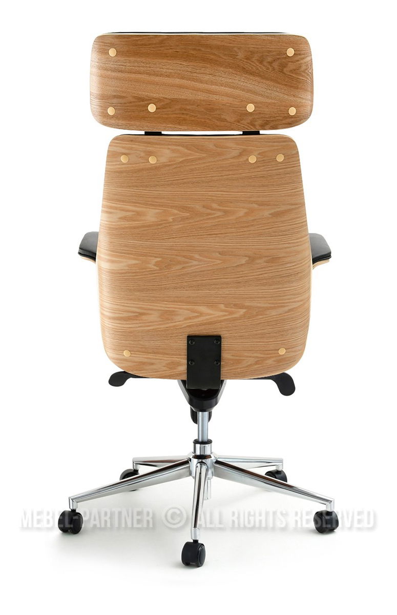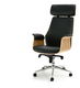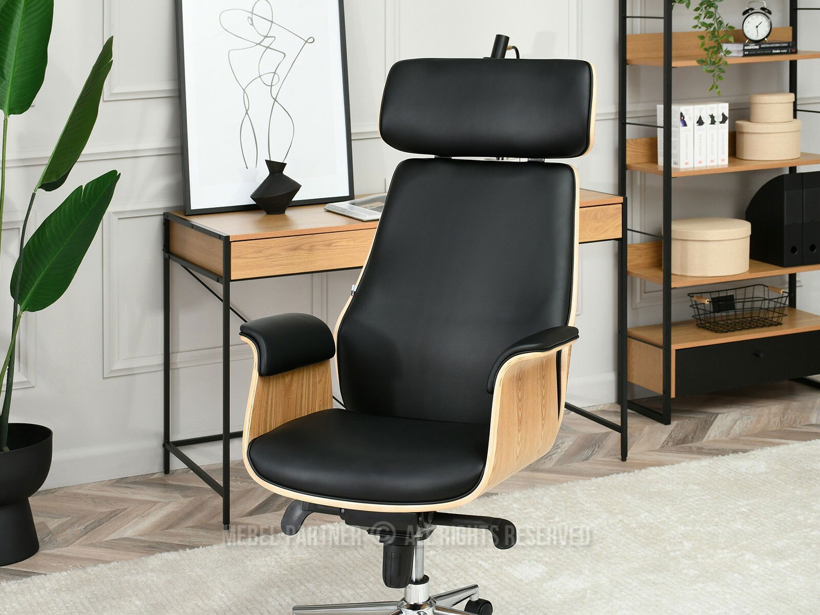 - Prírodný dubový povrch kontrastuje s hladkou čiernou koženkou, čo dodáva kreslu nadčasový vzhľad.