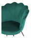 Toto elegantné vintage kreslo vnesie do vašej obývačky nádych retro štýlu. Kreslo je čalúnené na dotyk príjemným a mäkkým zamatom v zelenej farbe, vďaka čomu sa hodí k mnohým štýlom zariadenia interiéru – od retro štýlu až po moderný. Operadlo kresla v tvare mušle pritiahne pozornosť všetkých vašich hostí a zároveň poskytne pohodlné miesto na sedenie.