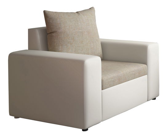 Kreslo Monarda (béžová + biela) je pohodlným kreslom s výškou 81 cm a hĺbkou 83 cm. Kreslo má široké operky na ruky a mäkký vankúš na zips, ktorý umožňuje relaxáciu. Výplň kresla je vyrobená z vlnitých vlákien potiahnutých rúnom a má polyuretánovú penu s hustotou 28 kg/m³ - T2844 a vlnité pružiny. Konštrukcia kresla je veľmi kvalitná a vyrobená z masívneho dreva, drievotriesky v hrúbke 16 mm, drevovláknitej dosky a preglejky. Kreslo Monarda má výšku sedenia 41 cm, hĺbku sedenia s vankúšom 53 cm, hĺbku sedenia bez vankúšov 65 cm, výšku kresla po opierky 57 cm a výšku kresla bez vankúša 78 cm. Tkanina Kornet, s ktorou je kreslo pokryté, je husto tkaná látka so štruktúrou a melírovaným efektom, ktorá je nanáročná na údržbu. Kreslo je vyrobené v dvojfarebnej kombinácii ekokože a štruktúrovanej látky, konkrétne z ekokože Mandarin MA a tkaniny Kornet.