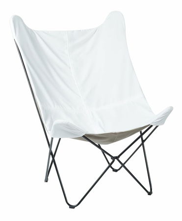 Toto kreslo so zamatovým sedadlom v univerzálnej bielej farbe je dokonalou kombináciou ležadla a kresla. Jedinečný tvar kresla, ktorý pripomína motýlie krídla, ponúka najlepší komfort počas sedenia. Vďaka svojmu dizajnu je ľahké a možno ho jednoducho premiestniť z jedného miesta na druhé. Tenká čierna konštrukcia zaručuje stabilitu kresla. Umiestnite ho do akejkoľvek miestnosti a vytvorte si pohodlný relaxačný kútik.