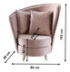 Kreslo Rander (ružová) s výškou 102 cm a hĺbkou 80 cm je vyrobené z látky Kronos 19. Výška sedu je 44 cm a hĺbka sedu s vankúšmi je 53 cm, bez vankúšov 62 cm. Kreslo má nosnosť 120 kg a jadro je z drevotriesky a PUR peny. Výplň je z molitanu a kreslo má dva celočalúnené vankúše. Sedadlový vankúš nie je snímateľný, ale poťahy na vankúšoch majú zips. Kreslo sa nedá rozložiť a textília má odolnosť podľa Martindale: 85000 oderov.