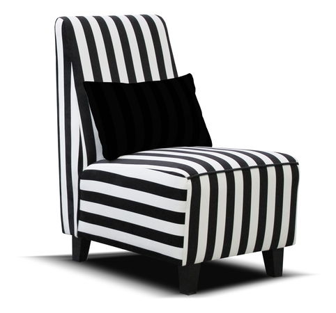 Dizajnovo zaujímavé kreslo s výrazným pásikavým vzorom, ktoré sa hodí do moderne zariadených interiérov. Ku kreslu je dodávaný vankúš čiernej farby. Kreslo má drevené nohy.