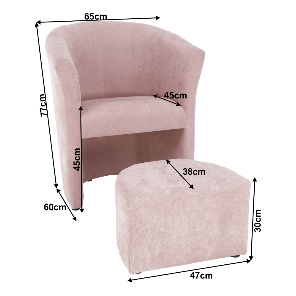 Kreslo Rosana (ružová) (s taburetkou)