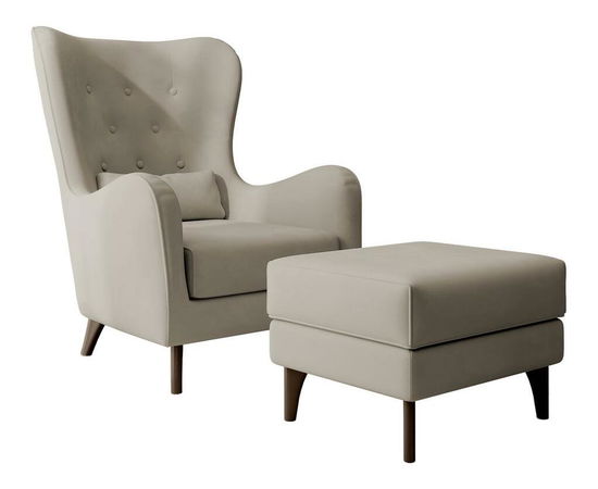 Hľadáte pohodlné kreslo, ktoré vám umožní vytvoriť si útulný kútik na oddych? Vyberte si model Vďaka vysokému komfortu, ktorý môžete zažiť, sa budete konečne cítiť uvoľnene. Nábytok je osadený na drevených nožičkách zaisťujúcich stabilitu. Priestranná korba je vybavená vysokými podrúčkami a praktickými podrúčkami. Je dokonalým doplnkom na doplnenie funkčnosti interiéru a vytvorenie ideálneho miesta na oddych. Aby sa dosiahol čo najlepší efekt natiahnutia látky, pri výrobnom procese je na operadle stoličky našitý zips, umiestnený v strede, skrytý za paspulou. Takáto pozornosť k detailu zaručuje vysokú kvalitu spracovania a hlavne zaručuje, že bude slúžiť roky Detaily produktu: kreslo má podnožku, pohodlné podrúčky, štýlové prešívanie na operadle, drevené nohy vo farbe wenge, nábytok čalúnený látkou, Mono 233 v šedo-béžovej farbe Mono je zamat príjemný na dotyk s hladkým povrchom. Vysoko odolný proti oderu, žmolkovaniu a treniu. Pod vplyvom svetla nevybledne.