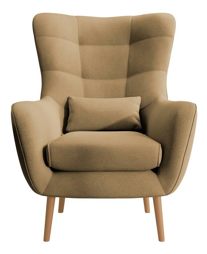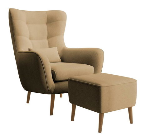 ZobraziťHľadáte pohodlný nábytok do obývačky, kde si oddýchnete po náročnom dni? Vyberte si kreslo ušák sa vyznačuje vysokým operadlom s charakteristickými ušami obklopujúcimi telo a pohodlnými podrúčkami, ktoré vám umožnia ponoriť sa do jeho srdca s vašou obľúbenou knihou alebo šálkou horúceho čaju. Elegantné prešívanie dodáva celku šarm a drevené nohy poskytujú stabilnú oporu. Módny tvar a prírodné farby zapadnú do každého aranžmánu, od škandinávskeho až po moderný štýl Podrobnosti o produkte: kreslo vrátane podnožky, hrúbka peny v operadle: 6 cm, hrúbka peny v sedadle: 13 cm, výška operadla: 70 cm. , pohodlné podrúčky , štýlové prešívanie na operadle, drevené nohy vo farbe svetlého dreva, nábytok čalúnený látkou, Castel 48 v žltej farbe Castel je mäkká, hladká látka vyznačujúca sa vysokou odolnosťou proti treniu, oderu a žmolkovaniu, vďaka čomu je ideálna pre každodenný nábytok. Ďalšou výhodou je Easy Clean Technology - materiál sa ľahko čistí, čo umožňuje jednoduché odstránenie nečistôt s trochou vody a mäkkou handričkou.