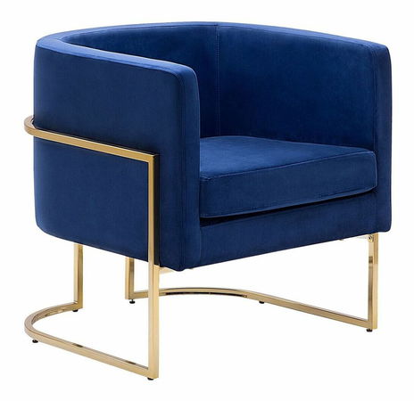 Ponorte sa do pohodlia, ktoré ponúka toto elegantné dizajnové kreslo. Mäkká výplň a hladké zamatové čalúnenie vám poskytnú pohodlné sedenie a navodia atmosféru, akú možno zažiť v luxusných hoteloch. Vďaka kovovému rámu v zlatej farbe sa hodí do interiérov v štýle glamour, ale aj do tých moderne zariadených. Umiestnite ho do obývacej izby a zlaďte s konferenčným stolíkom s lesklými nohami alebo do spálne, kde vynikne v kombinácii s toaletným stolíkom.