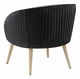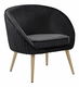 Ideálny kúsok pre milovníkov retro štýlu. Toto elegantné kreslo určite osvieži zariadenie vašej obývacej izby, a to vďaka elegantnému zamatovému čalúneniu v klasickej čiernej farbe a dekoratívnej úprave zadnej časti operadla. Vysokokvalitné materiály prispievajú k skvelému vzhľadu kresla a nohy z masívu zaručujú jeho stabilitu.