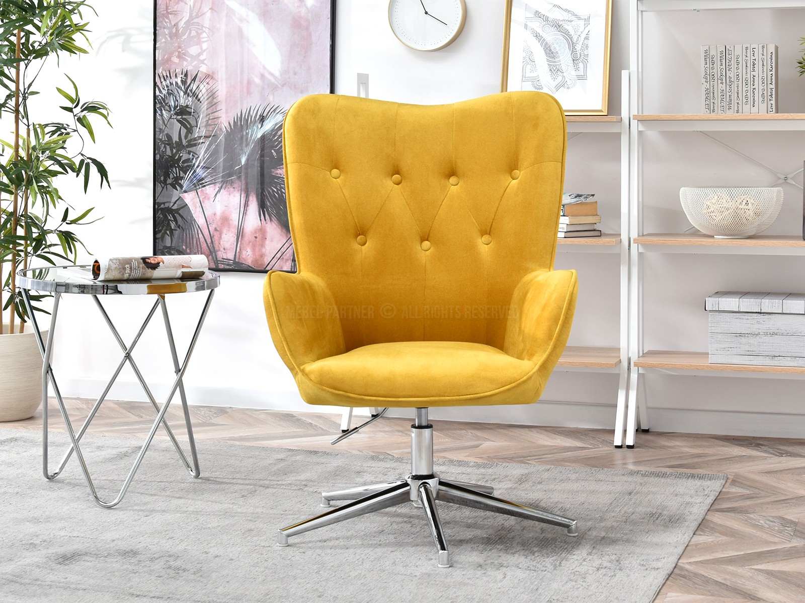Kreslo Truni (žltá + chrómová)