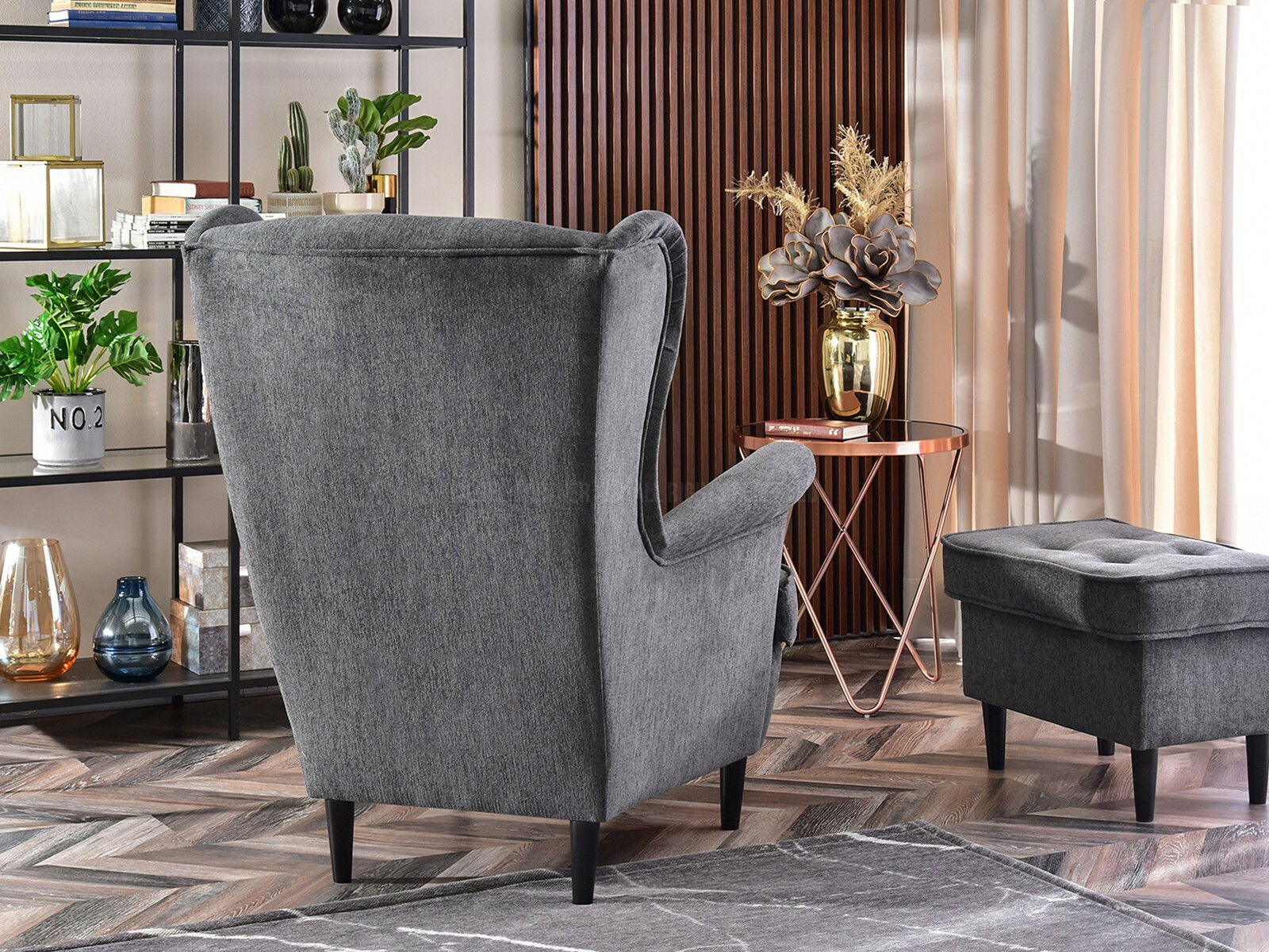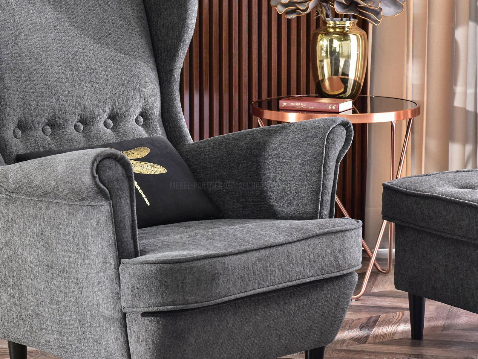 Kreslo ušiak Margis (grafitová + biela)