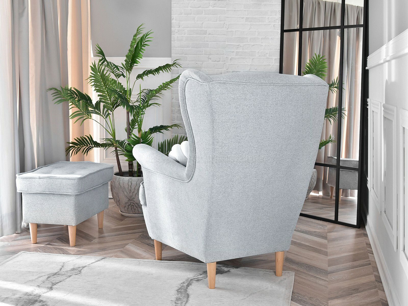 Kreslo ušiak Margis (sivá + biela)