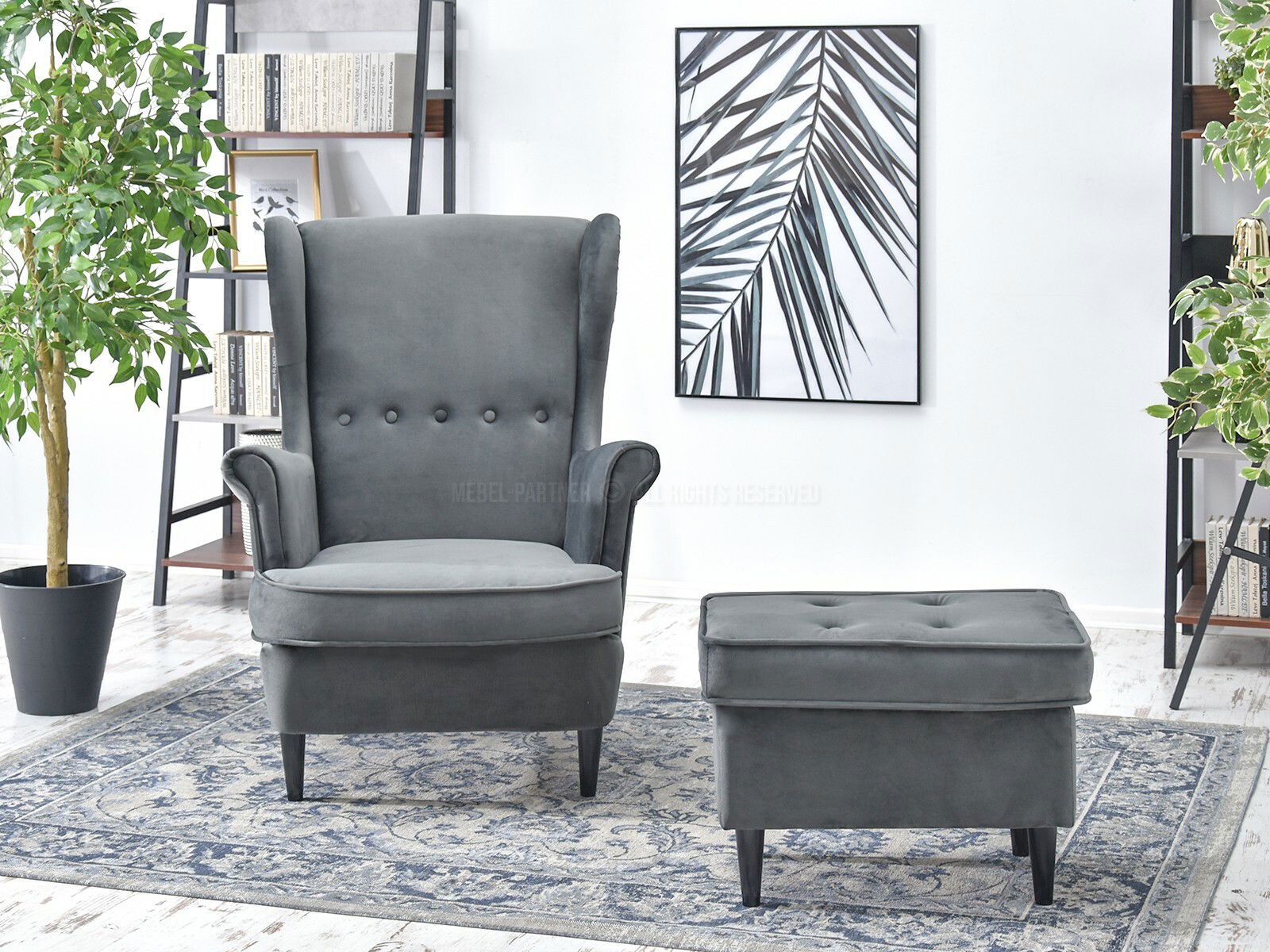 Kreslo ušiak Margis (sivá + biela)