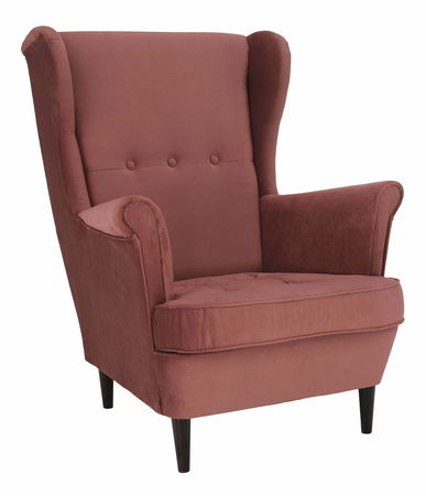 Vitajte v svete ušiakov! Moderné kreslo Romino 2 NEW je skvelým doplnkom pre relax či oddych. Jeho kvalitná látka Kronos v staroružovej farbe spolu s pohodlnou opierkou chrbta pomáhajú predchádzať bolestiam chrbta. Mohutné opierky rúk poskytujú relax aj vašim rukám. Ozdobné gombíky a elegantné nožičky z dreva vo farebnom prevedení orech dodávajú kreslu štýlový vzhľad. Pri sledovaní televízie alebo čítaní knihy si môžete pohodlne oprit hlavu o jednu z bočných opierok. Vysoké 104 cm, široké 82 cm a hlboké 90 cm, kreslo je ideálnou voľbou pre tých, ktorí hľadajú pohodlie a luxusný pocit pri svojom zaslúženom oddychu. Doprajte si to najlepšie a relaxujte v štýle s kreslom ušiak Romino (Kronos 29).