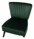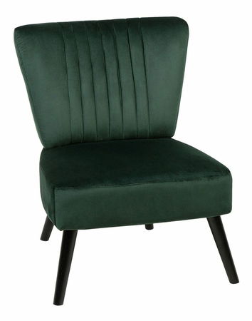 Funkčný tvar a jednoduchá silueta tohto kresla sa osvedčí najmä v spálni, obývacej izbe alebo predsieni. Jednoduchý dizajn bez bočných opierok a s nízkymi nohami dokonale doplní akýkoľvek moderný alebo minimalistický interiér. Vysokokvalitné zamatové čalúnenie v elegantnej tmavozelenej farbe je doplnené zvislým prešívaním a štyri pevné drevené nohy v čiernom farebnom prevedení zvýrazňujú celkový dizajn kresla.
