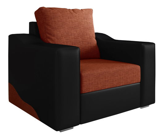 Kreslo Wisteria v oranžovej a čiernej farbe s výškou 89 cm a hĺbkou 83 cm vám prináša pohodlné miesto na oddych. Široké operky na ruky a mäkký vankúš na zips umiestnený za chrbtom vám pomôžu relaxovať. Kreslo je vyrobené z kvalitnej konštrukcie s masívnym dreveným rámom, drevotrieskou, drevovláknitou doskou a preglejkou. Výplň je z vlnitých vlákien potiahnutá rúnom s polyuretánovou penou a vlnitými pružinami. Výška sedenia je 40 cm s rozmerným sedadlom 60x50 cm a hĺbkou sedenia bez vankúšov 70 cm. Kreslo má výšku 57 cm s opierkami, výšku 78 cm bez vankúša a nožičky sú predné v chrómovej a zadné v plastovej variante. Tkanina Sawana, ktorá má jemnú štruktúru a vysokú odolnosť, sa skvele hodí na čalúnenie pohoviek a postelí. Tkanina Mandarin MA je kvalitnou imitáciou pravej kože a je mäkká, flexibilná, odolná a farbostála. Kreslo Wisteria má test oderuvzdornosti Martindale na úrovni 45 000 cyklov pre tkaninu Sawana a 30 000 cyklov pre tkaninu Mandarin MA. V balení je 1 kus s rozmernosťami 69x109x79 cm a váhou 43 kg.