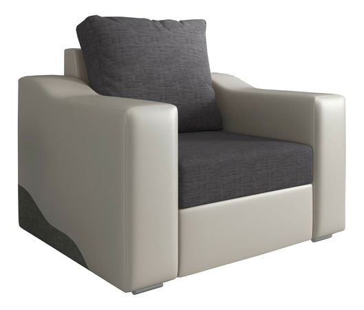 Kreslo Wisteria je vynikajúcim nábytkom pre relaxáciu a pohodlie na vašom obľúbenom mieste. S jeho širokými operkami na ruky a mäkkým vankúšom na zips za chrbtom vám poskytne maximálny komfort. Kreslo je vyrobené z kvalitnej dvojfarebnej kombinácie ekokože a štruktúrovanej látky Sawana. Konštrukcia kresla je veľmi kvalitná s výplňou z vlnitých vlákien potiahnutých rúnom. Výška sedenia kresla je 40 cm a má sedadlo s vankúšom o rozmeroch 60x50 cm. Hĺbka sedenia bez vankúšov je 70 cm a výška kresla bez vankúša je 78 cm. Nožičky sú predné z chrómu a zadné z plastu. Tkanina Sawana má jemnú štruktúru a vysokú odolnosť. Skvele sa hodí na čalúnenie pohoviek a postelí. Test oderuvzdornosti Martindale je 45 000 cyklov. Tkanina ekokoža Mandarin MA je kvalitnou imitáciou pravej kože a je mäkká, flexibilná, odolná a farbostála. Tento materiál môžete umývať jemne navlhčenou handričkou. Test oderuvzdornosti Martindale pre tkaninu MA je 30 000 cyklov. Kreslo Wisteria má rozmery 89 cm (výška) x 83 cm (hĺbka) x 78 cm (šírka) a váži 43 kg.