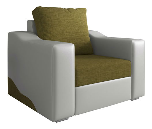 Kreslo Wisteria (zelená + biela) s výškou 89 cm a hĺbkou 83 cm je ideálne miesto pre vašu relaxáciu. Široké operky na ruky a mäkký vankúš na zips umiestnený za chrbtom vám poskytnú komfort a pohodlie. Konštrukcia kresla je veľmi kvalitná, vyrobená z masívneho dreva, drevotriesky, drevovláknej dosky a preglejky. Výplň kresla pozostáva z polyuretánovej peny a vlnitých pružín, ktoré sú potiahnuté rúnom. Výška sedenia je 40 cm, sedadlo s vankúšom má rozmer 60x50 cm a hĺbka sedenia bez vankúšov je 70 cm. Kreslo má výšku 57 cm po opierky a 78 cm bez vankúša. Nožičky sú z prednej strany vyrobené z chrómu a z zadnej strany z plastu. Tkanina Sawana je jemná, ľahká a odolná, vhodná pre čalúnenie pohoviek a postelí. Tkanina MA Mandarin je kvalitnou imitáciou pravej kože, mäkká, flexibilná a farbostála. Kreslo Wisteria (zelená + biela) sa dodáva v jednom balíku s rozmernosťou 69x109x79 cm a váhou 43 kg.