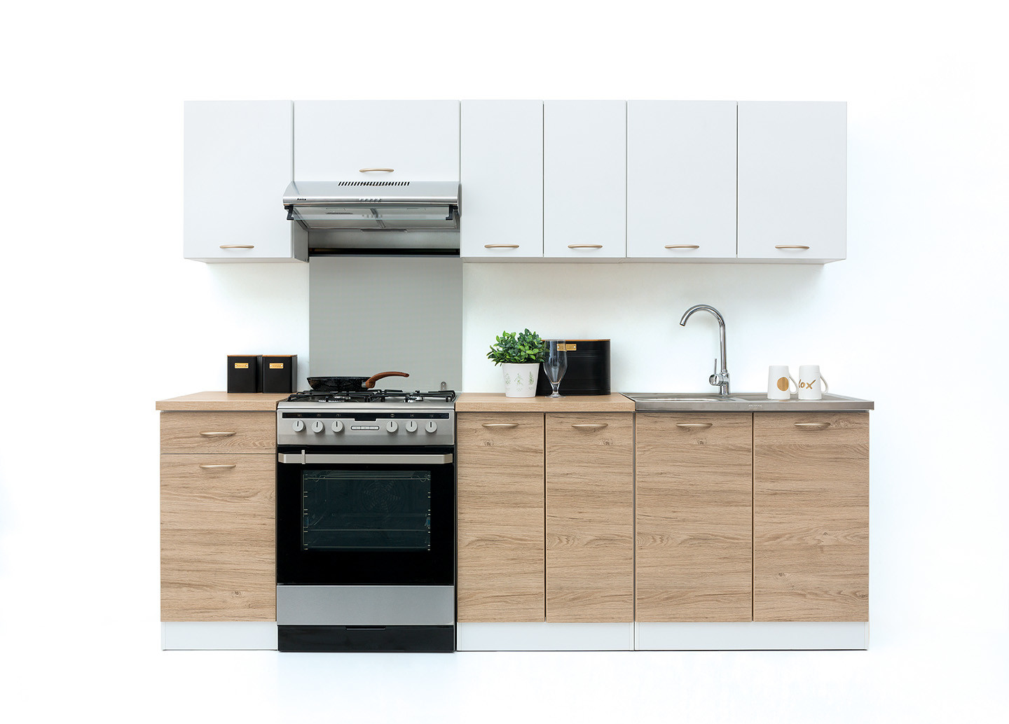 Kuchyňa Sonia 2 s dĺžkou 240 cm a výškou 85 cm a hĺbkou 60 cm je ideálnym riešením pre každý domov. Táto kuchyňa disponuje dostatkom úložného priestoru a je vyrobená v modernom dizajne. Biela matná farba dodáva kuchyni štýlový a čistý vzhľad, ktorý sa bude hodíť k akémukoľvek interiéru. Kombinácia bielych a dubových sonoma odtieňov robí z kuchyne Sonia 2 príjemné a elegantné miesto pre vaše varenie a prípravu jedál. Táto kuchyňa je vyrobená z kvalitných materiálov, ktoré zaručujú jej trvanlivosť a dlhodobú použiteľnosť. Kuchyňa Sonia 2 je vynikajúcou voľbou pre každého, kto hľadá spoľahlivý a funkčný produkt pre svoj domov.