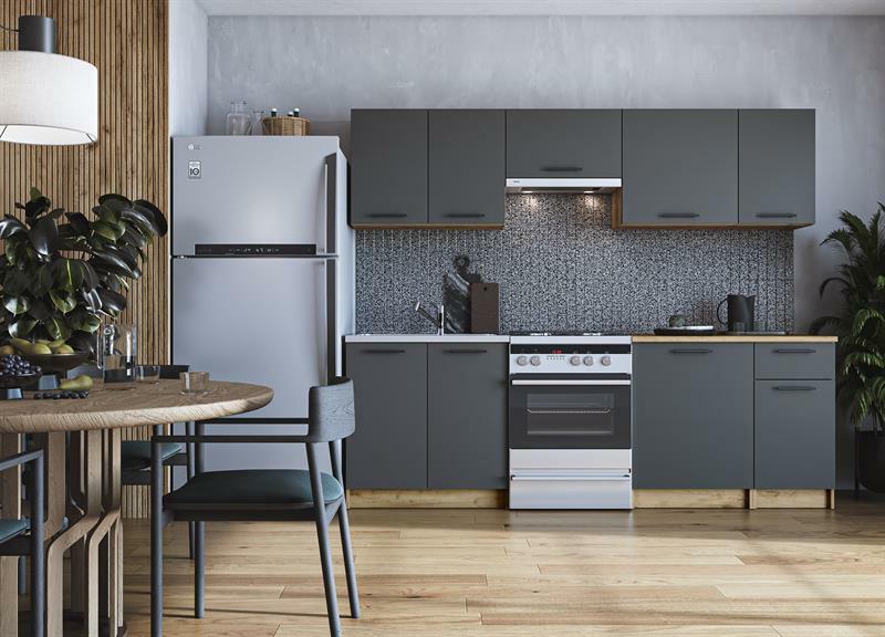 Kuchyňa 240 cm Danna (tmavosivá + prirodne drevo)