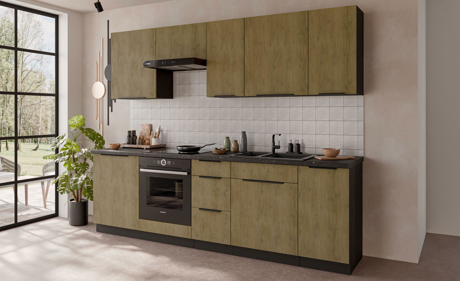 Kuchyňa 260 cm Carminia 2 (dub cremona + čierna)