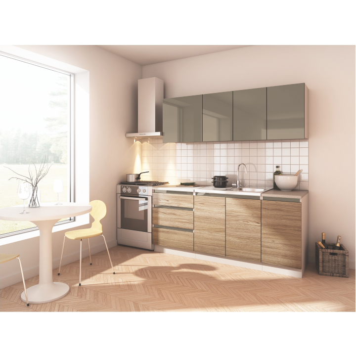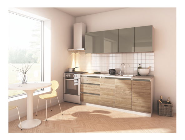 Kuchynská zostava Armando obsahuje horná aj spodné skrinky. Spodná skrinky sú dodávané vrátane pracovnej dosky a spodnej lišty. Drezová skrinka je bez pracovnej dosky a bez drezu.