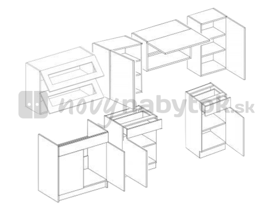 Jednotlivé diely sú navrhnuté tak, aby sa dali poskladať v ľubovoľnom poradí. To umožňuje zloženie si kuchyne podľa Vašich potrieb a predstáv.