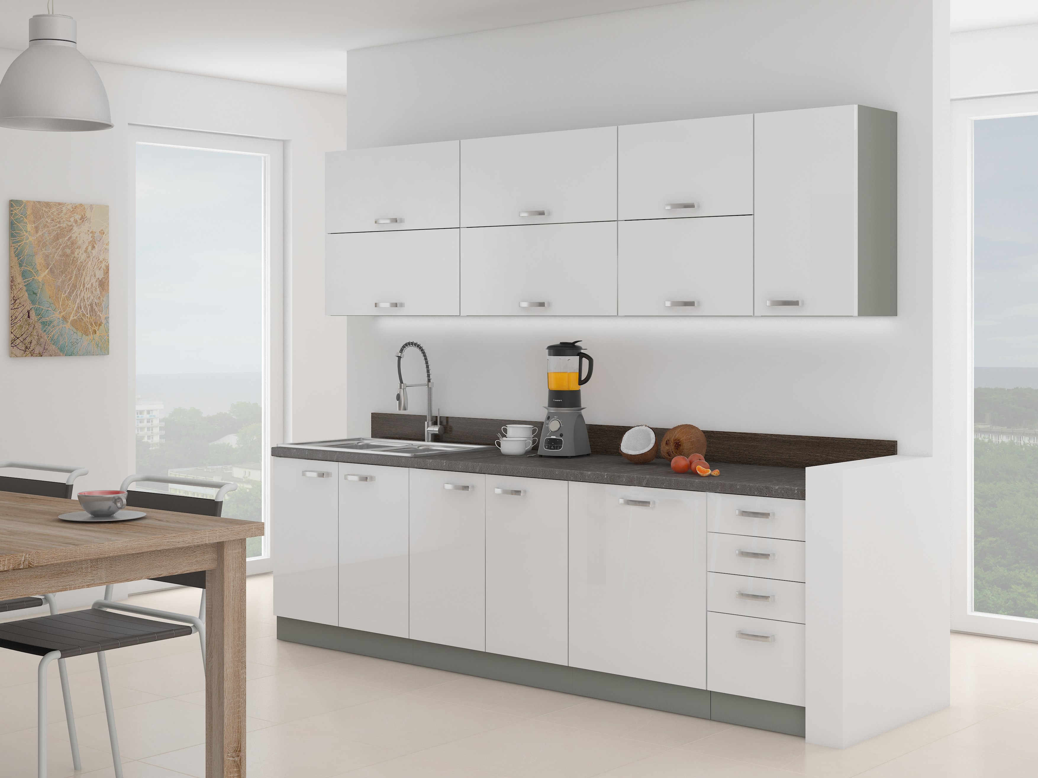 Kuchyňa Brunea 260 cm (sivá + lesk biely)