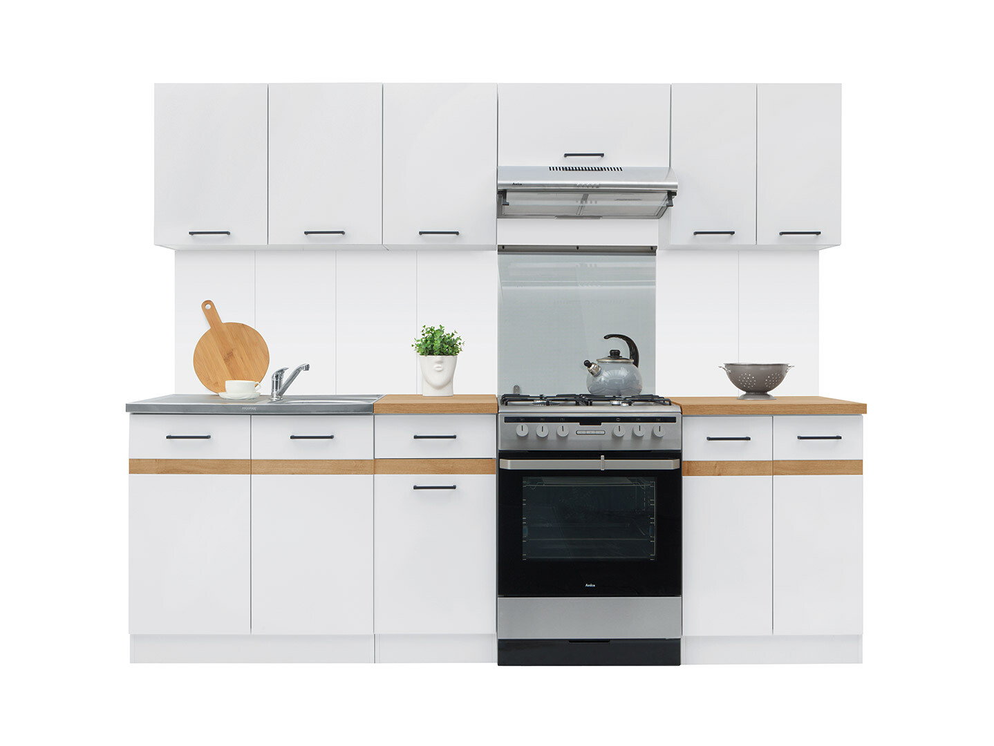 Kuchyňa BRW Junona line 240 cm lesk biely + dub craft zlatý