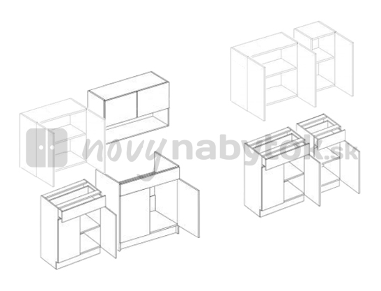 Jednotlivé diely sú navrhnuté tak, aby sa dali poskladať v ľubovoľnom poradí. To umožňuje zloženie si kuchyne podľa Vašich potrieb a predstáv.